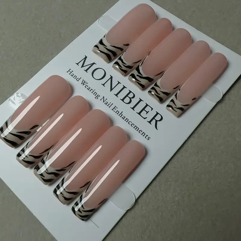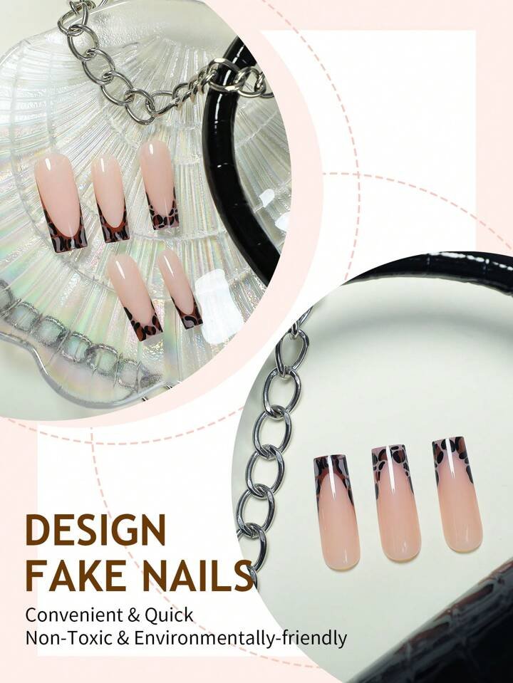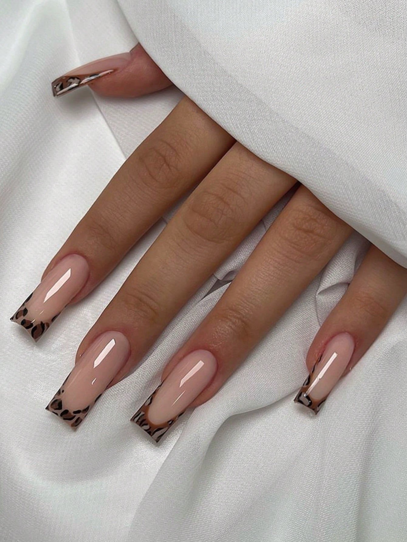 Unleash your bold and elegant side with our 24-Piece Long Square Leopard Print Press-On Nails. Designed to captivate, these glossy nails feature a stunning nude base with a chic French tip and leopard print accents. Perfect for women and girls seeking an effortlessly stylish manicure, these false nails add a fierce and fashionable touch to any outfit.