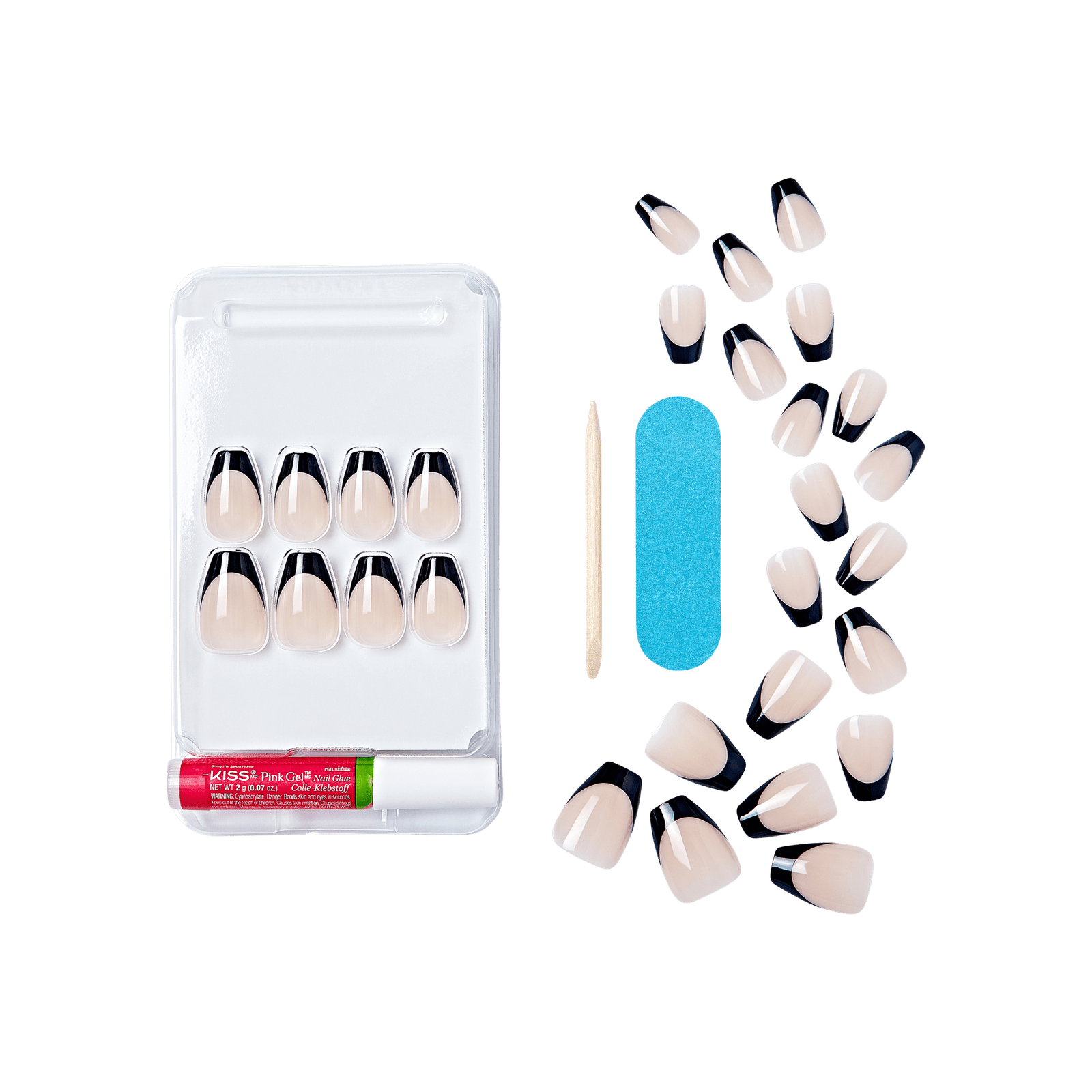 KISS Salon Acrylic French Color Press-On Nails, ‘Flame’, Black, Short Coffin, 31 Ct.