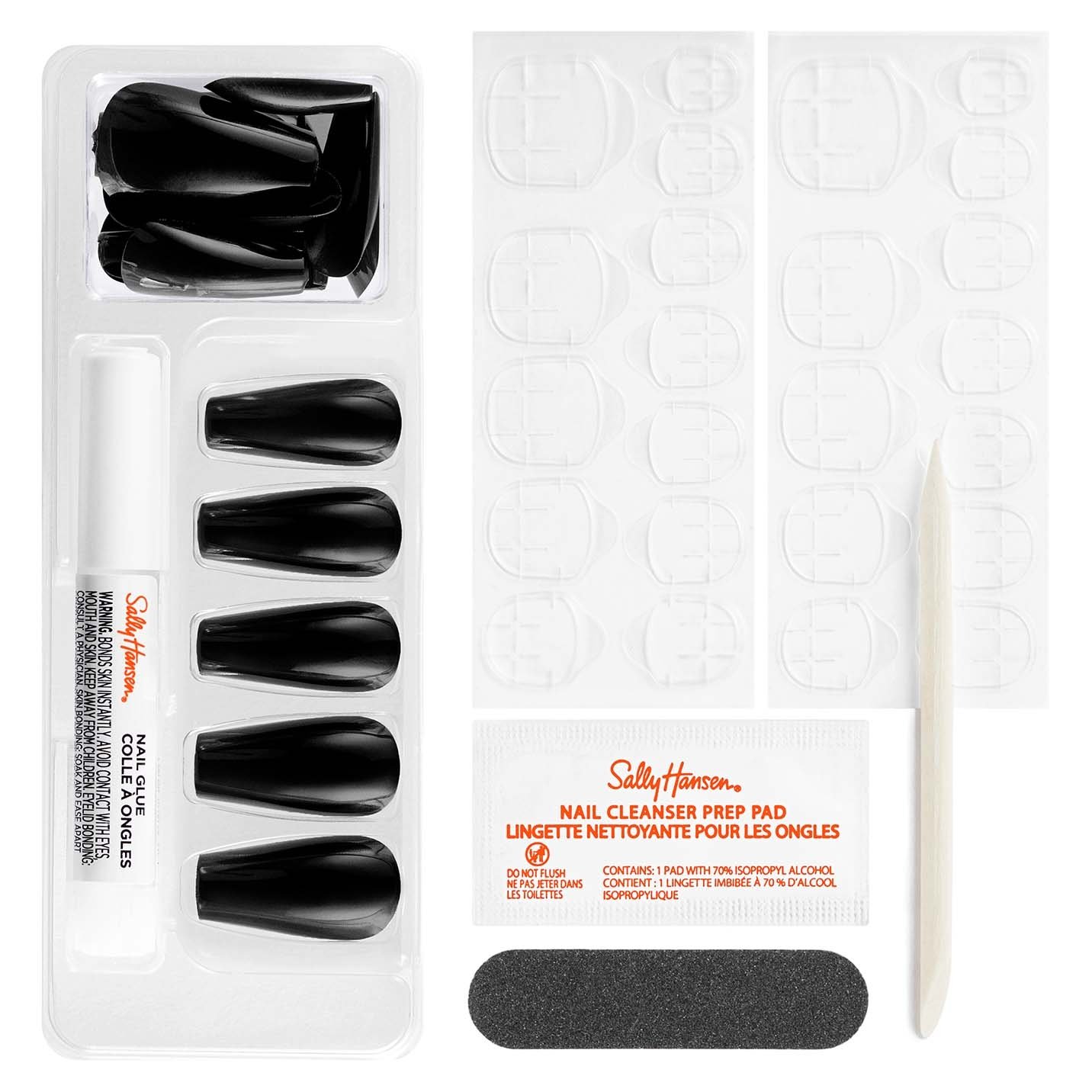 - 24 nails, file, cuticle stick, prep pad, adhesive tabs & nail glue included.