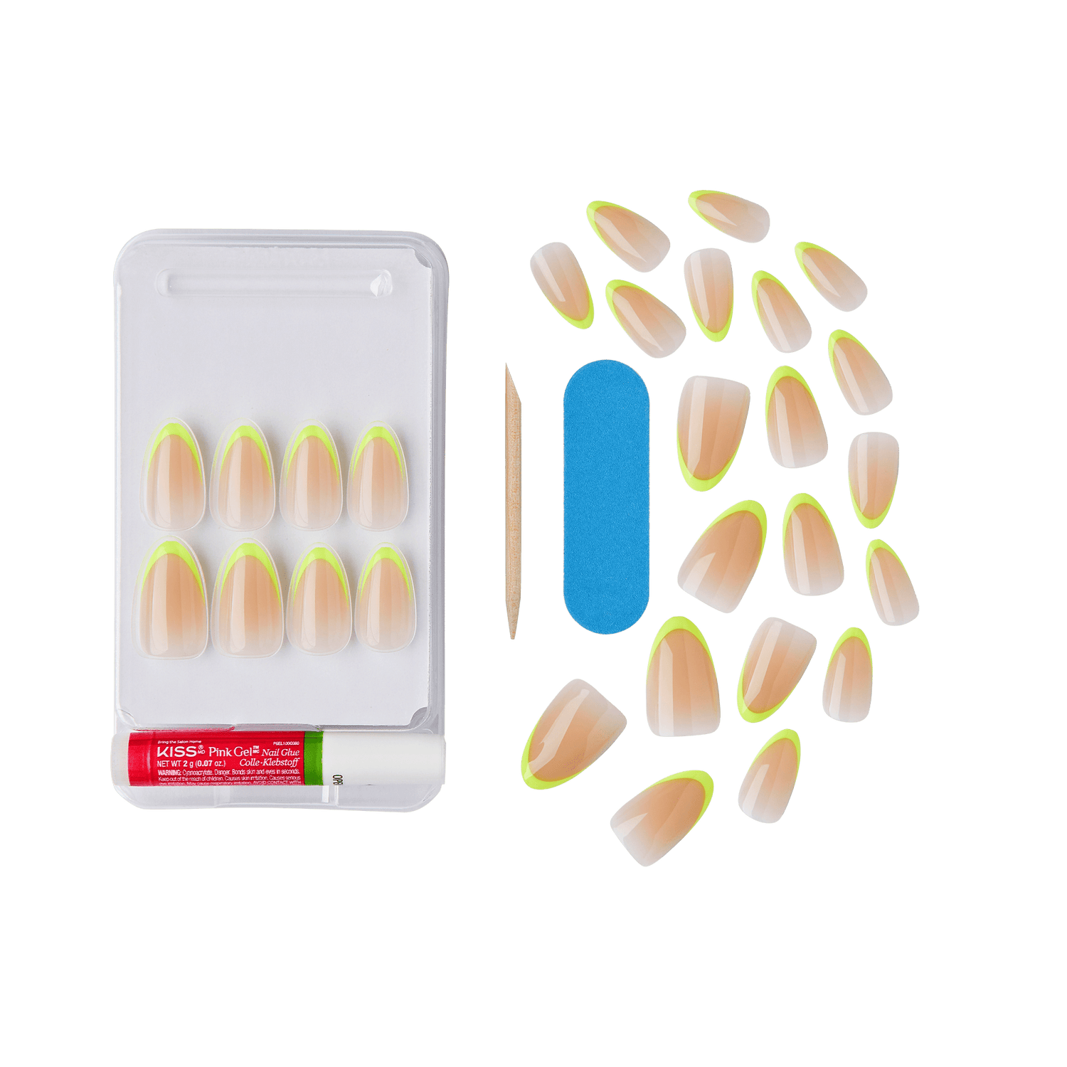KISS Salon Acrylic French Color Press-On Nails, “Hype”, Neon Yellow, Medium Almond, 31 count